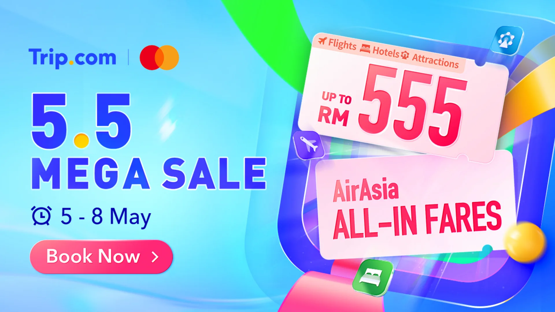 Plus, enjoy up to 30% off flight bookings with participating airlines like AirAsia, Malaysia Airlines and more during the 5.5 Mega Sale period.