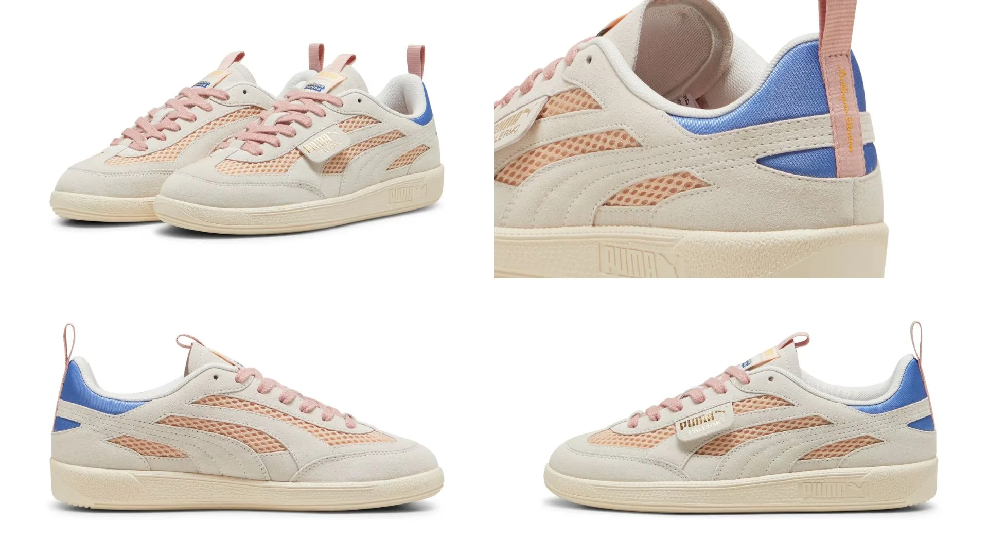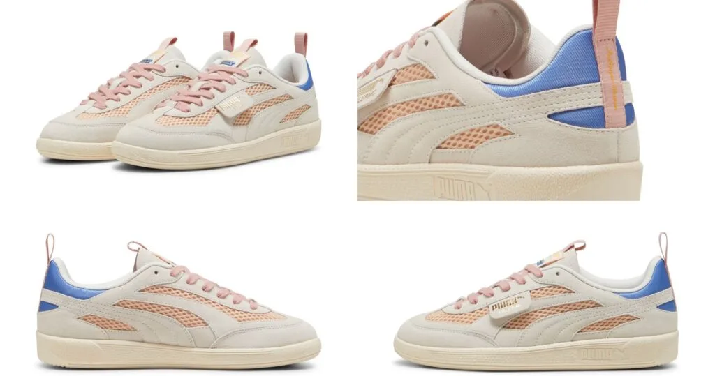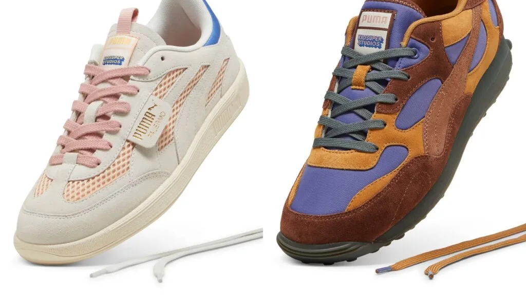 To begin with, the Palermo model boasts a suede upper made of cashmere, along with padded foam, leather overlays, and a suede tongue featuring printed co-branding on the nylon pull tab and woven label. Its body features a mesh lining and printed co-branding on sockliner. Complementing this is a padded heel patch featuring the printed logos of KidSuper on a nylon pull tab and PUMA on a flat gel insert.
