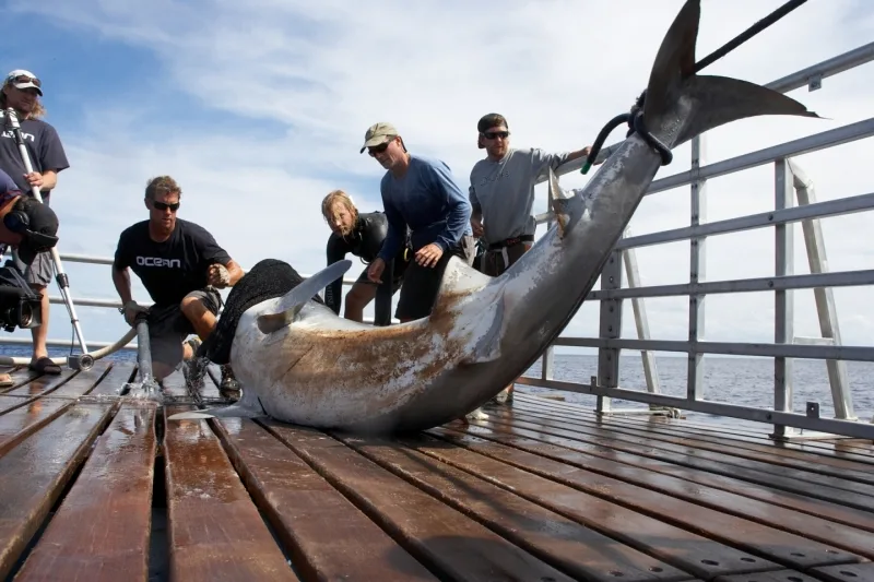 After a long stretch of nothing but frustration, the team is finally seeing consistent success mostly due to the realization that the technique used to catch great whites works perfectly on tiger sharks. Even though they’re all exhausted, the scientists and crew are now determined to catch and tag five sharks from five different species because they know that the tagging operations are part of an urgent mission to help protect and understand these magnificent fish.