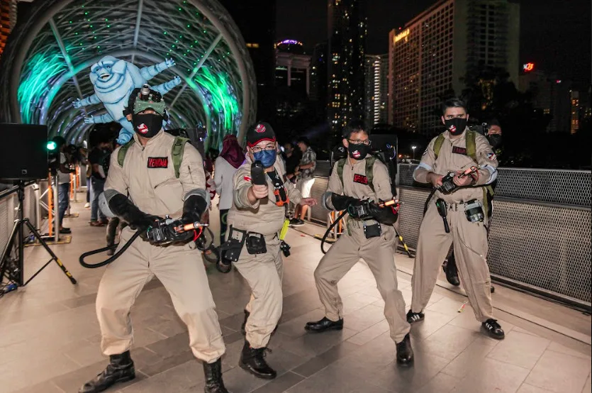 This marks the first ever movie studio blockbuster to take over the Saloma Link Bridge. This spectacular visual treat is a once in a lifetime experience for lucky Ghostbusters fans who were able to catch the momentous scenery as well as special appearances from fellow ghostbusters and Stay Puft marshmallow mascot at the Saloma Link Bridge over the weekend.