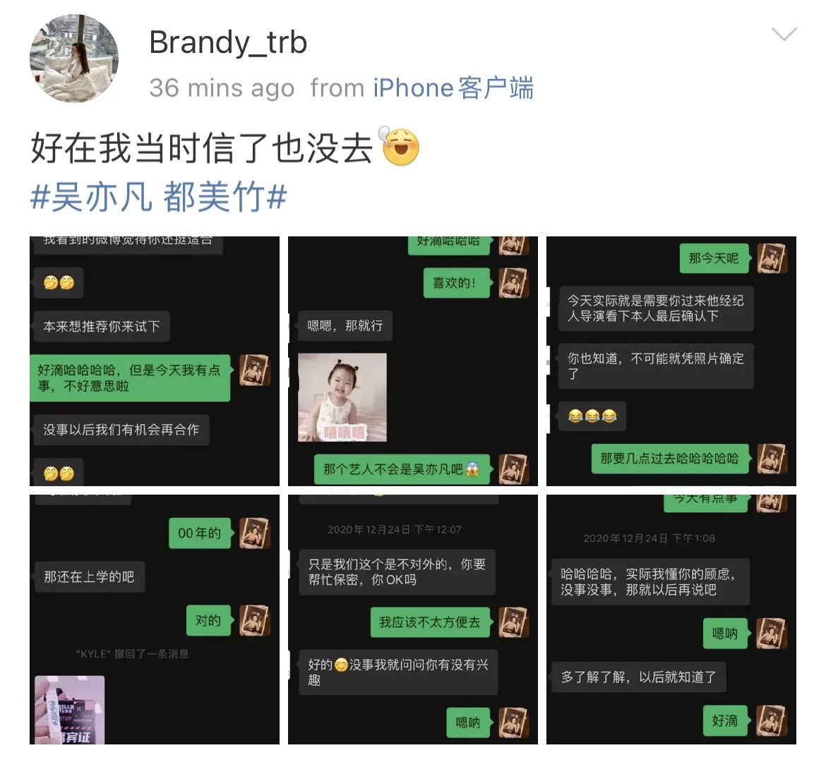 芷一安 shares a similar story in allegedly being reached out to by #KrisWu’s staff to audition in Aug 2020, stating after seeing Du Meizhu’s post & the other girls’ accts, she understands now