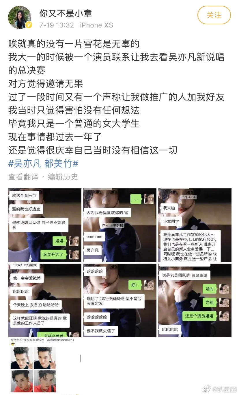 Following a series of sexual allegations against Kris, which was spearheaded by 19-year-old Du Meizhu (都美竹), more and more girls are coming forth with evidences of their alleged encounter with the Chinese-Canadian celeb.