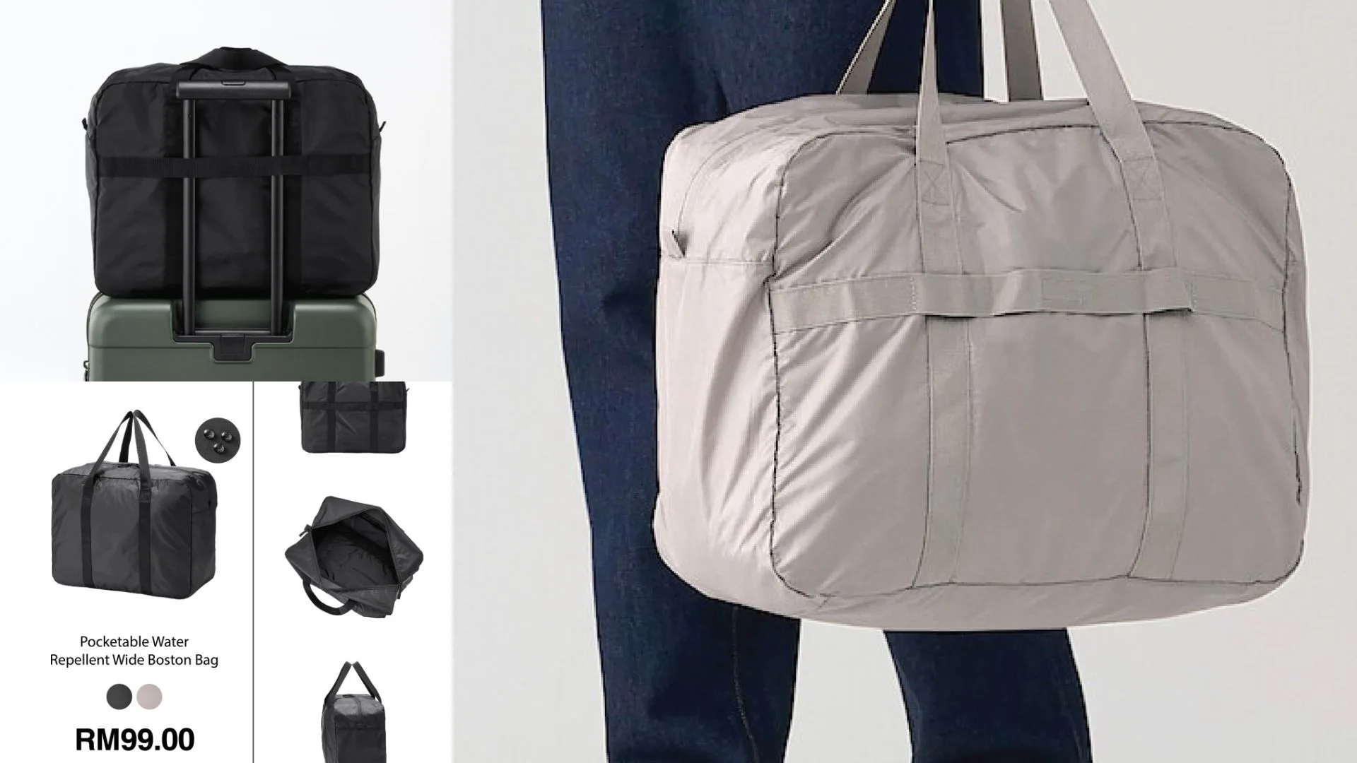 - The Pocketable Water Repellent Bag is available in Black & Dark Beige and is priced at RM99.