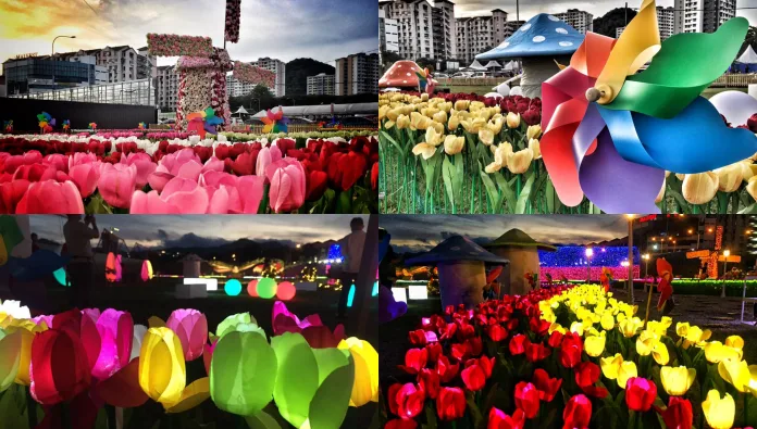 Visitors can expect to find between 15,000 – 20,000 LED lights here. There are plenty of Instagram-worthy corners to filled up your social media. There are LED giant butterflies, see-saws, swings, dazzling ornaments, plus a LED Tulip garden and LED tunnel, just to name a few.