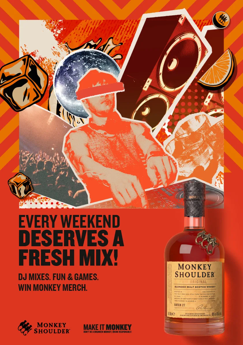 Ready to shake things up and give your nights a fresh mix? Join us and embrace the Monkey Shoulder spirit, where you hold the power to mix it up and craft your own perfect night.