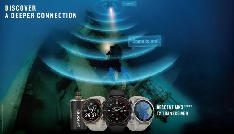 Hey, divers – meet your new dive partner. Garmin has announced the Descent Mk3 series watch-style dive computers and Descent T2 transceiver with enhanced SubWave sonar technology that – through a soon-to-be-released software update – will add diver-to-diver messaging and Diver Assistance to tank pressure monitoring.