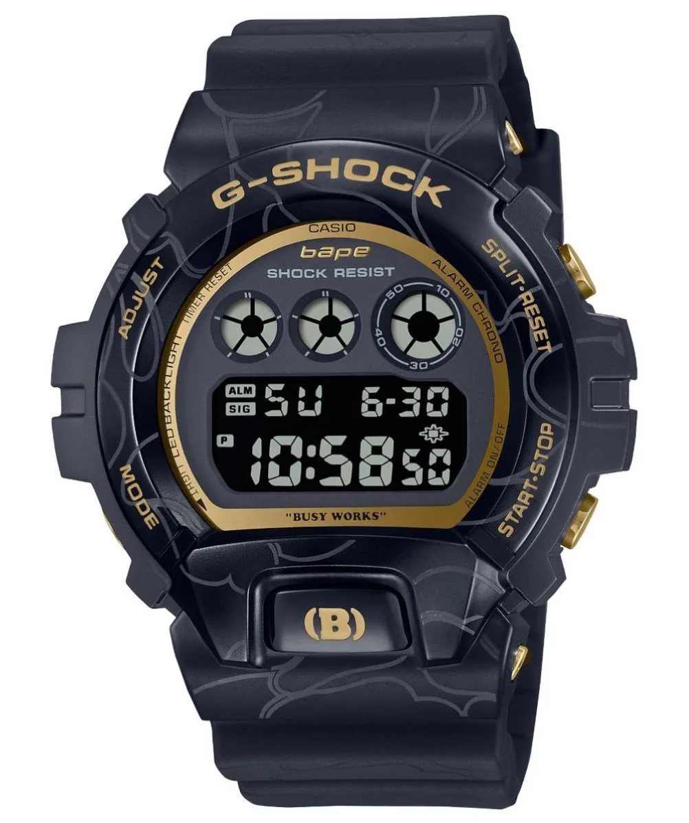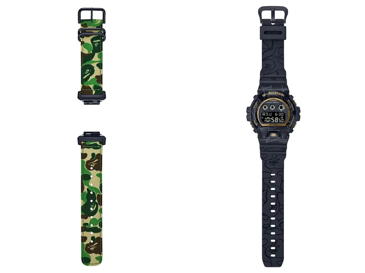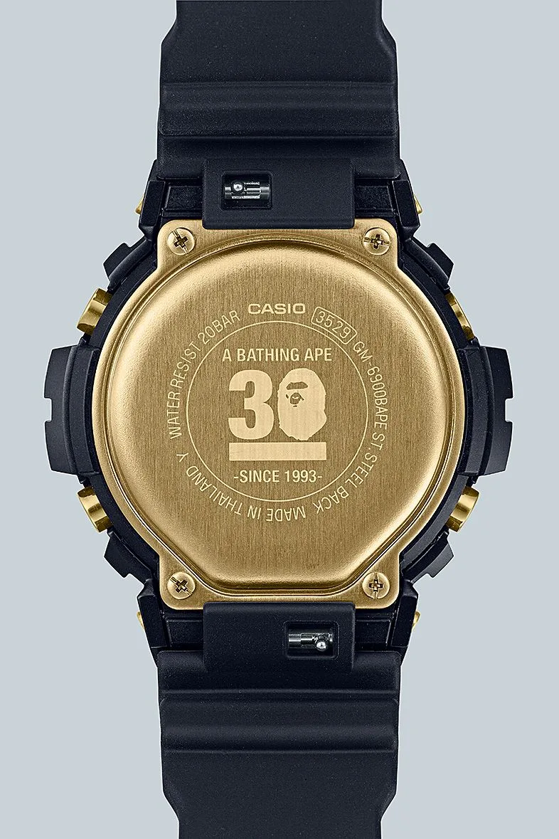 The G-SHOCK x BAPE® 30th Anniversary Special Model brings together BAPE®’s edgy, street culture style with G-SHOCK’s timekeeping toughness for a first-of-its-kind model that features a metal bezel on the GM-6900.