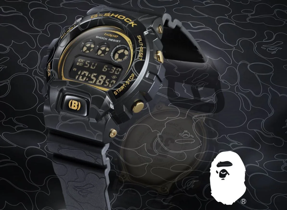 The G-SHOCK x BAPE® 30th Anniversary Special Model brings together BAPE®’s edgy, street culture style with G-SHOCK’s timekeeping toughness for a first-of-its-kind model that features a metal bezel on the GM-6900.