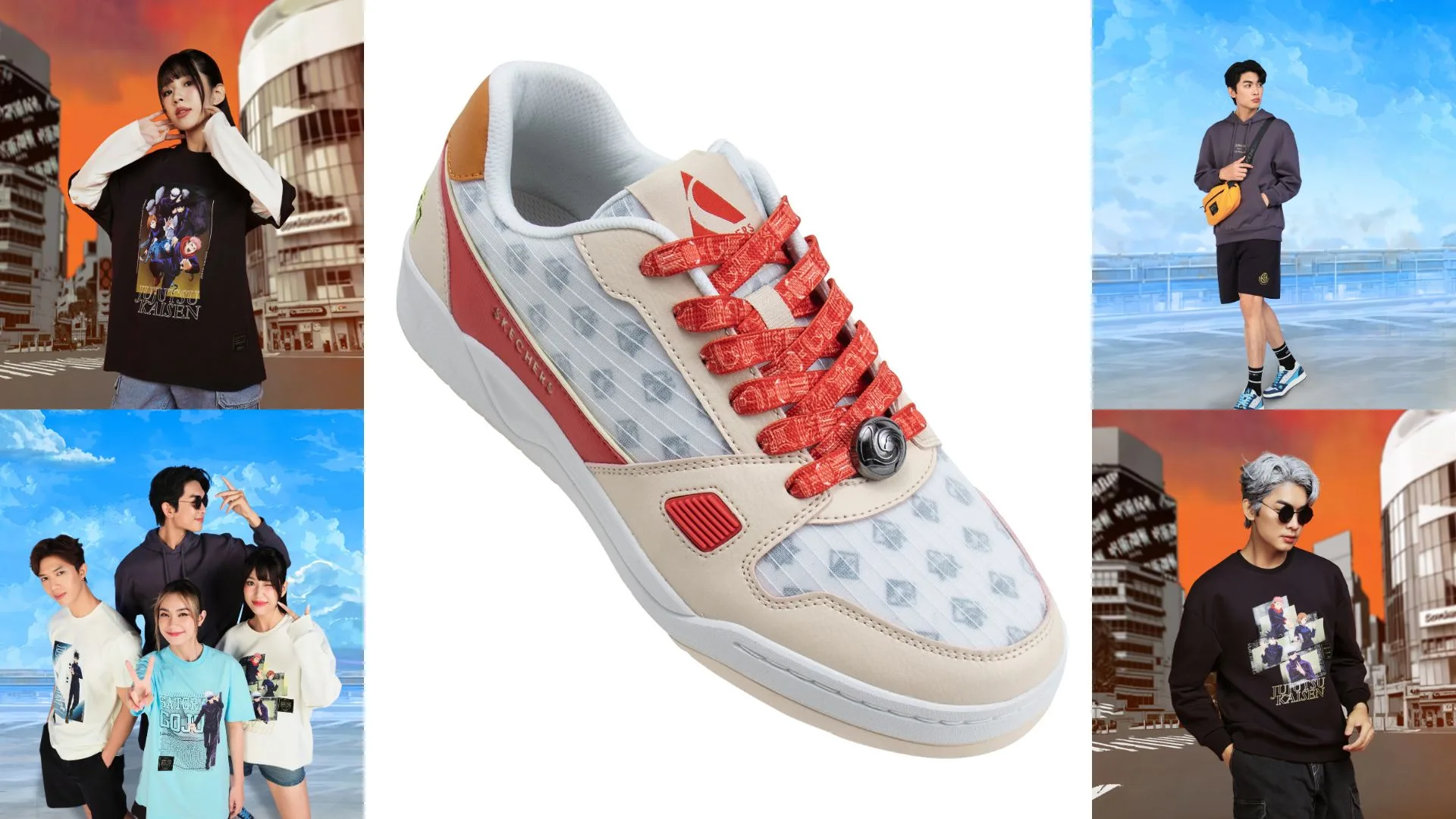Now available, the Skechers x Jujutsu Kaisen Collection offers a variety of eye-catching designs and colour choices that allow fans to express their love for Jujutsu Kaisen with these stylish references to the series. From bold character-inspired details to subtle nods to the world of sorcery, this collection is a must-have for anime enthusiasts and fashion lovers alike.