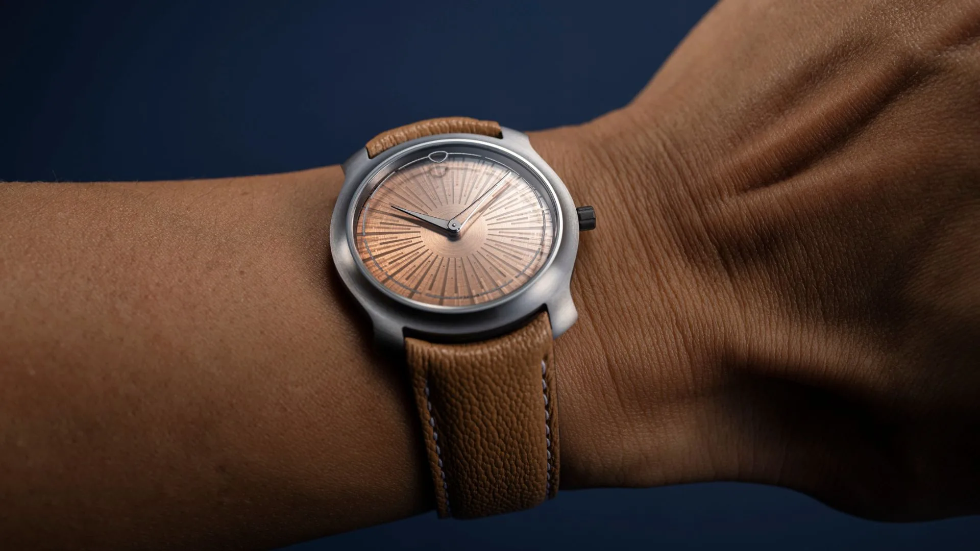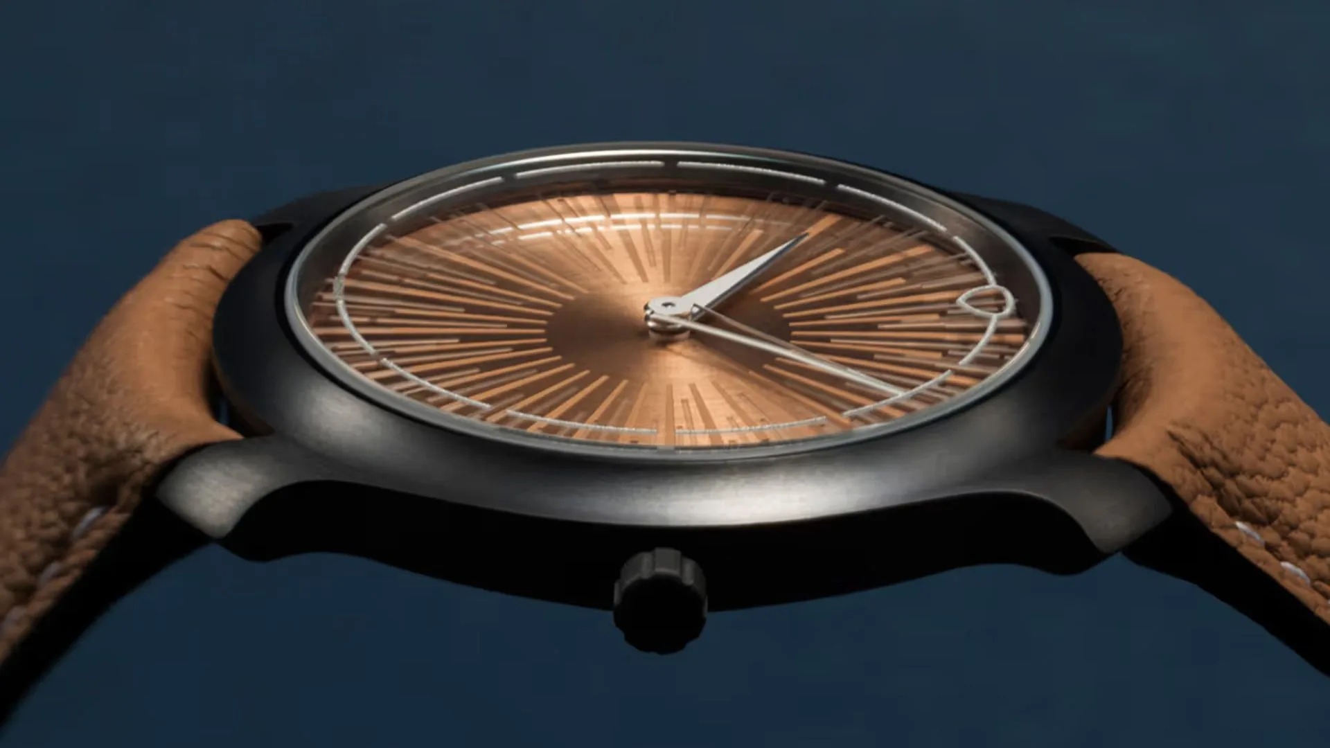 The gorgeous dial, which has a 5N rose gold coated surface and a multilayered pattern encased in a fused borosilicate layer, is the focal point of the tantalum watch case.