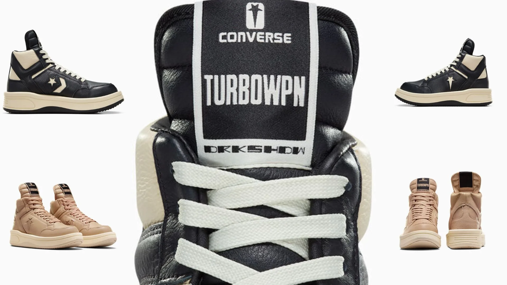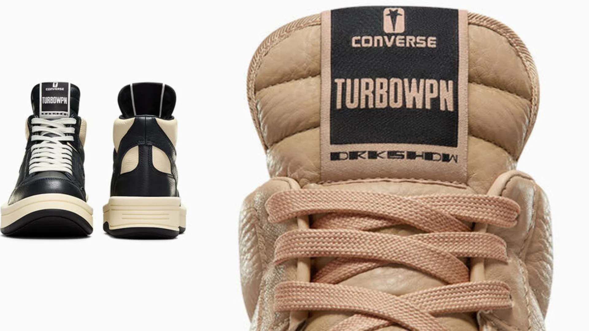 And to cement this stunning collaboration, the Converse x DRKSHDW TURBOWPN features a custom Rick Owen wrap-around woven label and DRKSHDW logo on the side of the shoe.