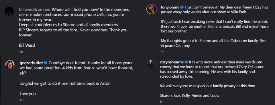 The former members of Black Sabbath also took to social media to express their grief. Tributes from Tony Iommi, Geezer Butler, and Bill Ward reflected not only sorrow but also deep gratitude for their time together. Ozzy’s death also came just weeks after the group held their final performance together on 5th July (Saturday) for Ozzy’s farewell concert, titled “Back to the Beginning.”