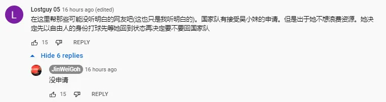 “As everyone knows, I quit the national team two months ago. I’ve lived in regret every day since then,” Jin Wei admitted in her YouTube video. “I really wish to continue playing badminton regardless of levels or statuses.” As it turns out, she did make a request to return to the national team and BAM is considering it.