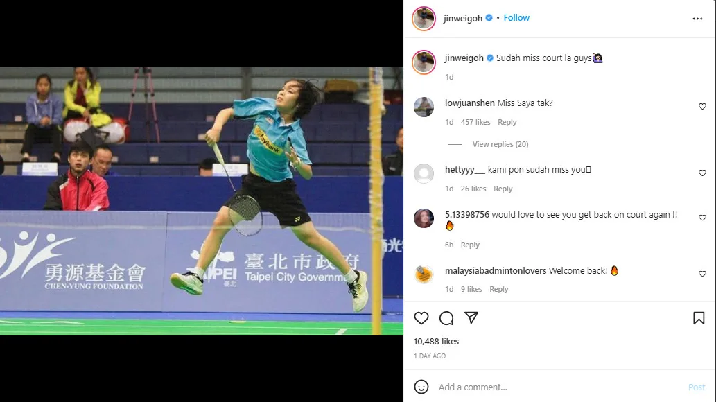 Jin Wei recently shared that she regretted leaving the badminton scene and wants to play badminton again. However, she clarified that she will not be doing so under the Badminton Association of Malaysia (BAM).