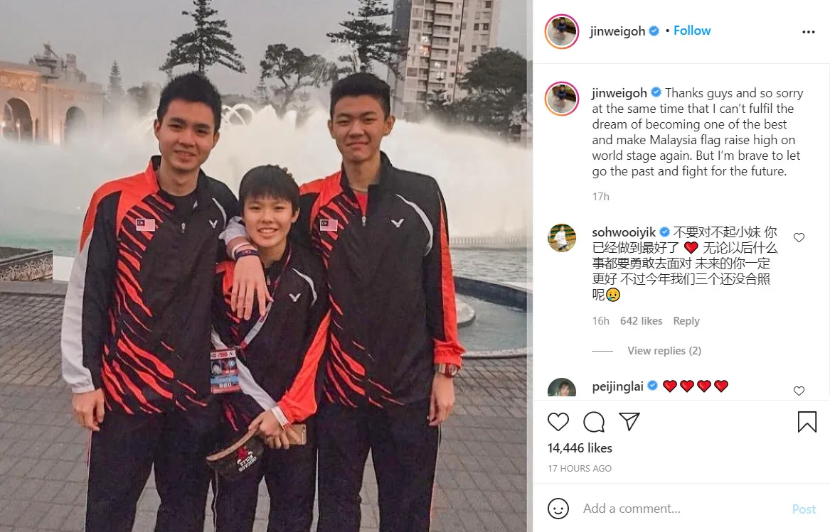 Additionally, Jin Wei wrote a post on Instagram to thank and apologise to her fans. She mentioned her dream of becoming one of the best and raising Malaysia’s flag again on the world stage, which will now be unfulfilled. “But I’m brave (enough) to let go (of) the past and fight for the future,” she said.
