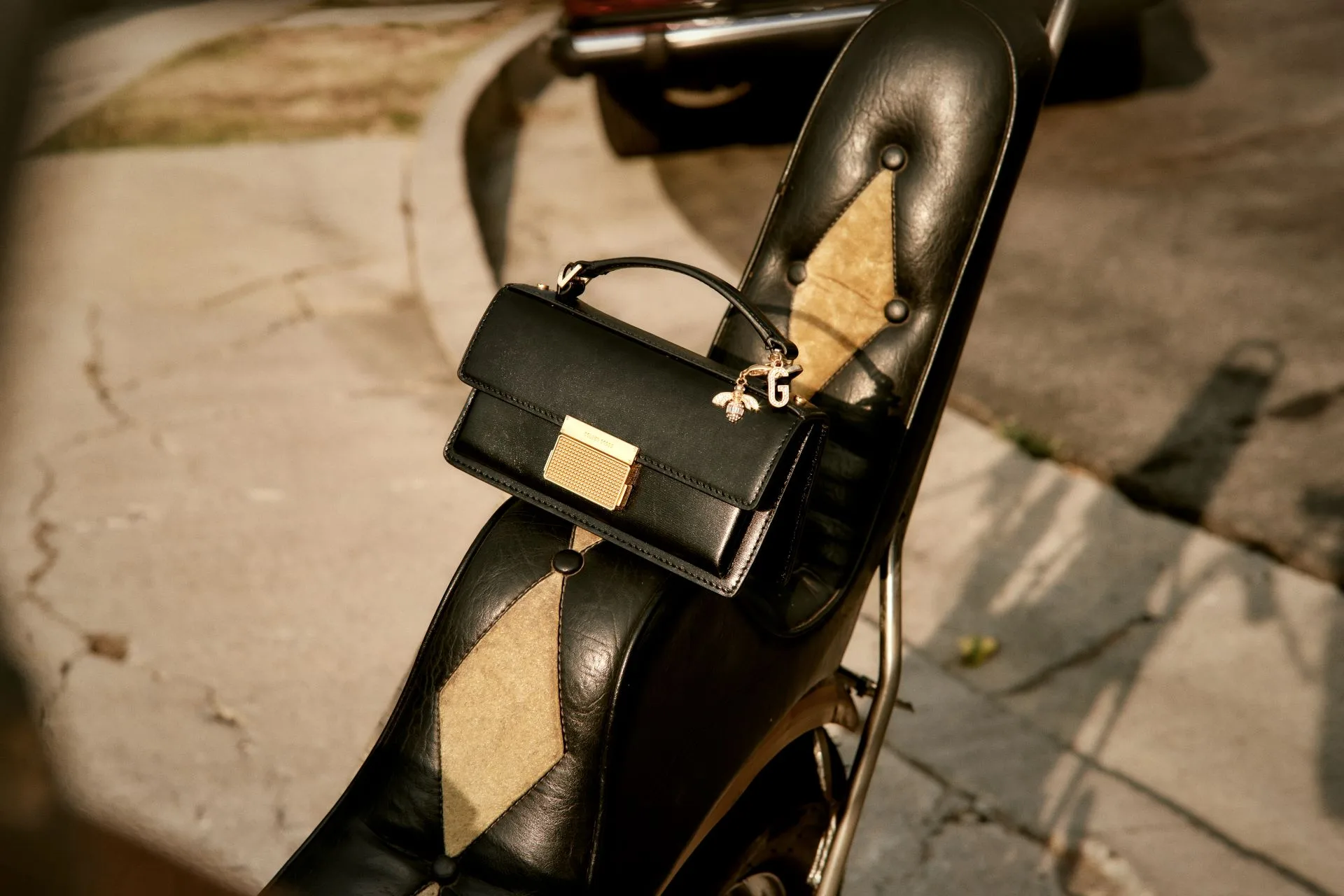 The Gioia Bag channels the spirit of eclectic travel and nostalgia. With its iconic baguette silhouette and customisable chain strap, it is designed to evoke memories of journeys taken and destinations dreamed of. The addition of Swarovski crystal letters and playful charms like bees and hearts offer a personal touch, making the Gioia a treasured piece for any holiday adventure.