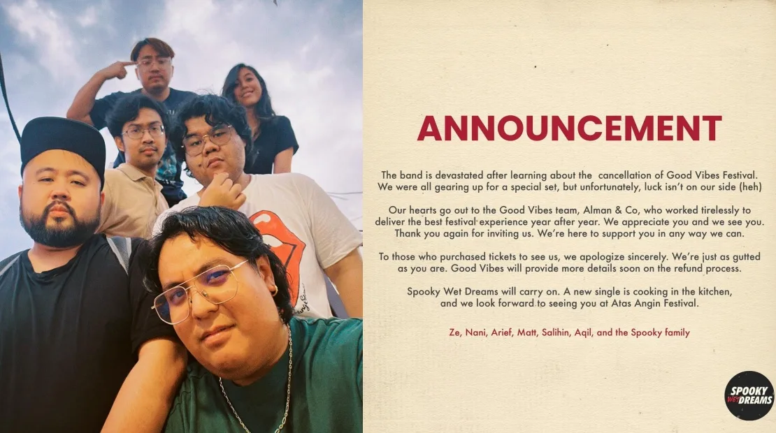 Local act Spooky Wet Dreams were supposed to play GVF this year for the first time. The band took to Instagram to share the news with fans saying, “[We’re] devasted after learning about the cancellation of Good Vibes Festival. We were all geared up for a special set, but unfortunately, luck isn’t on our side (heh)”.