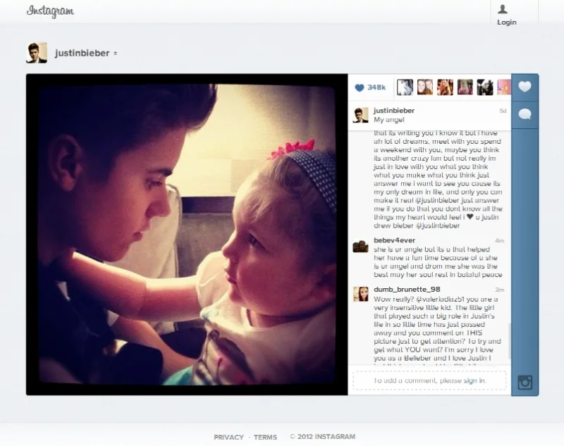 While her family, friends, fans, and staff members at the cancer center were in mourning, Justin paid tribute to her at his 29th September concert in Arizona. He sang “One Less Lonely Girl” while a touching photo montage played in the background. (Source)