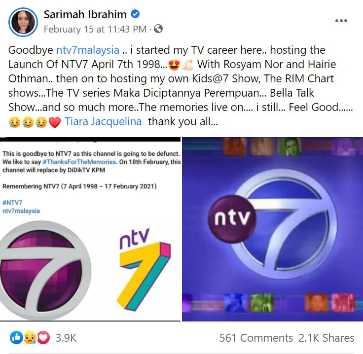 Even Sarimah Ibrahim, a Malaysian television host who has worked with ntv7 took to Facebook to talk about her memories with the channel. She promises that the memories of ntv7 will still live on.