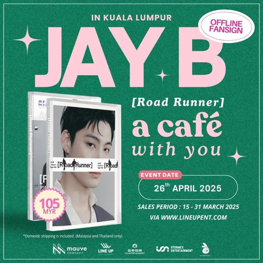 Concert organiser Stormex Entertainment recently announced details for Jay B’s first offline fansign event in KL. The “JAY B – A Café With You” event will be held on 26th April 2025 (Saturday), a day before the singer’s solo concert at Zepp Kuala Lumpur.