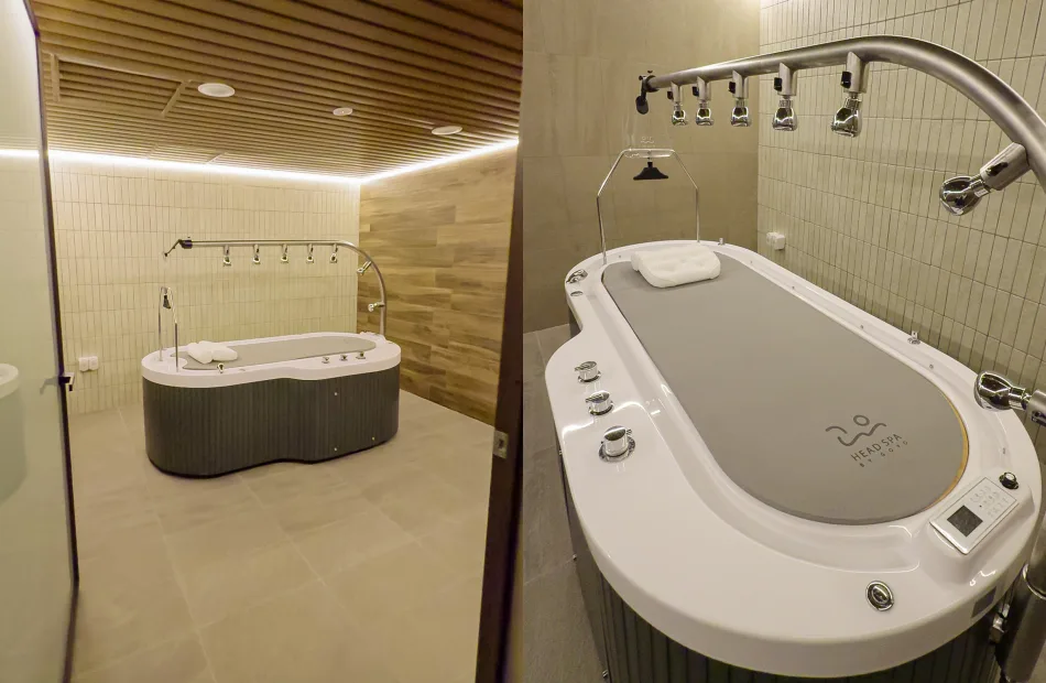 The space features a luxurious salon and hair-drying area for private grooming, a welcoming lounge for pre-session relaxation, and a dedicated head spa zone with six single rooms, two couple suites and two traditional Korean scrub rooms. I opted for the Authentic Korean Body Scrub service, and when my therapist led me to one of the rooms, I was greeted by a small but cosy changing area, which connected to the scrub room through another door. The scrub room may feel a little overwhelming at first, since it was my first time experiencing something like this, but the calming music and reassurance from my therapist quickly helped ease my nerves.