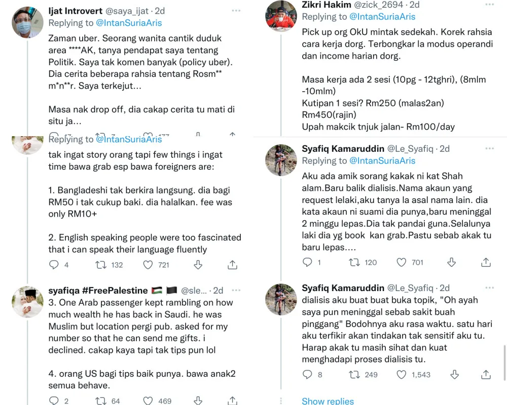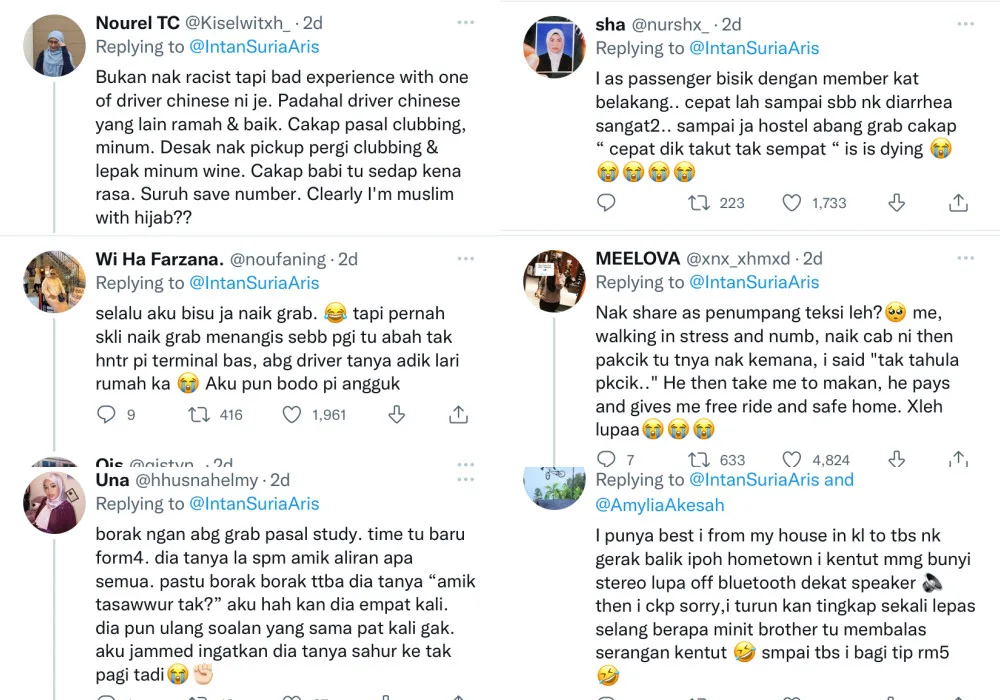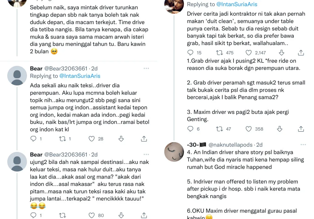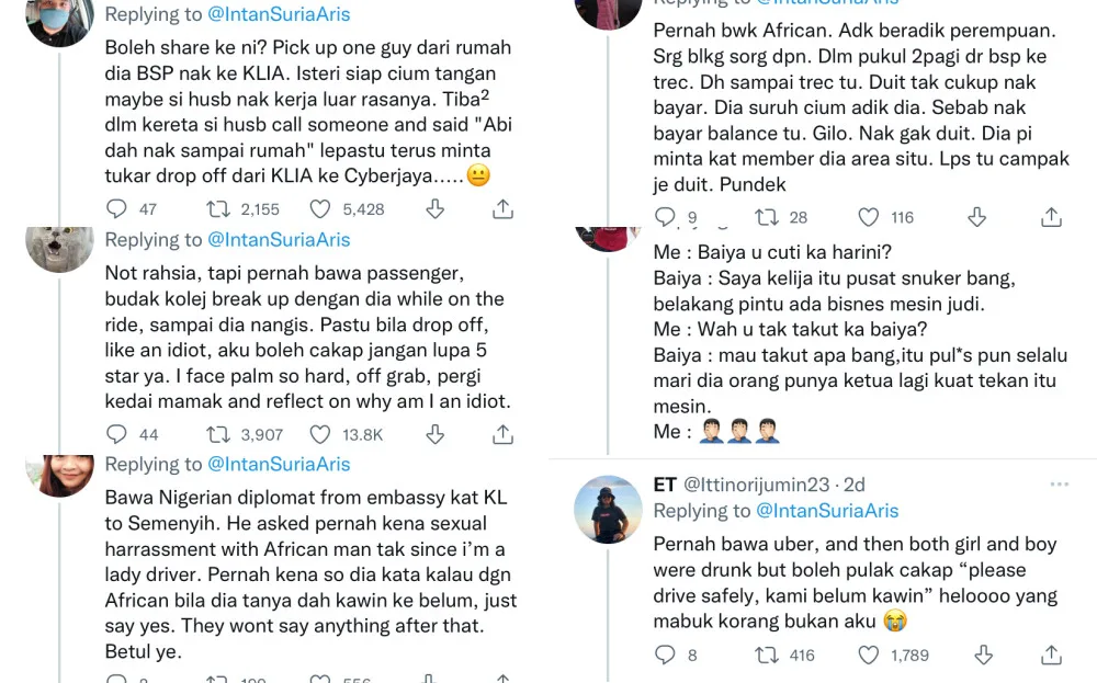 Because of the tweet thread, many Grab drivers were more than happy to share their side of the story. Although rest assured, none of them disclosed any names or any form of identity. There were stories about creepy uncles, political scandals and more!