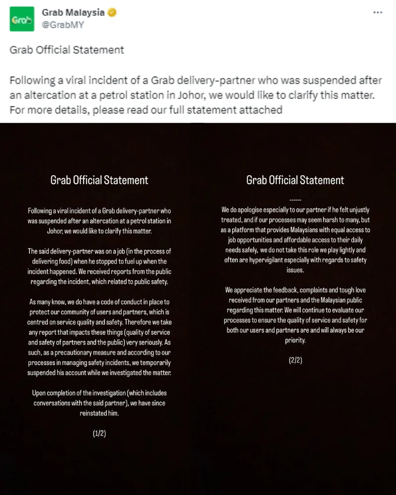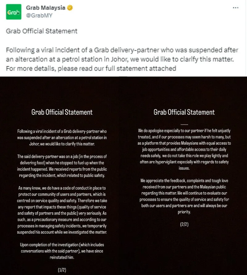 After many Malaysians bombarded their social media on behalf of the rider, Grab Malaysia made an official statement to clarify the issue. In the statement, the company explained that the rider’s suspension necessary so they could investigate the matter. They added that the rider has been reinstated and apologised to him for all the issues caused.