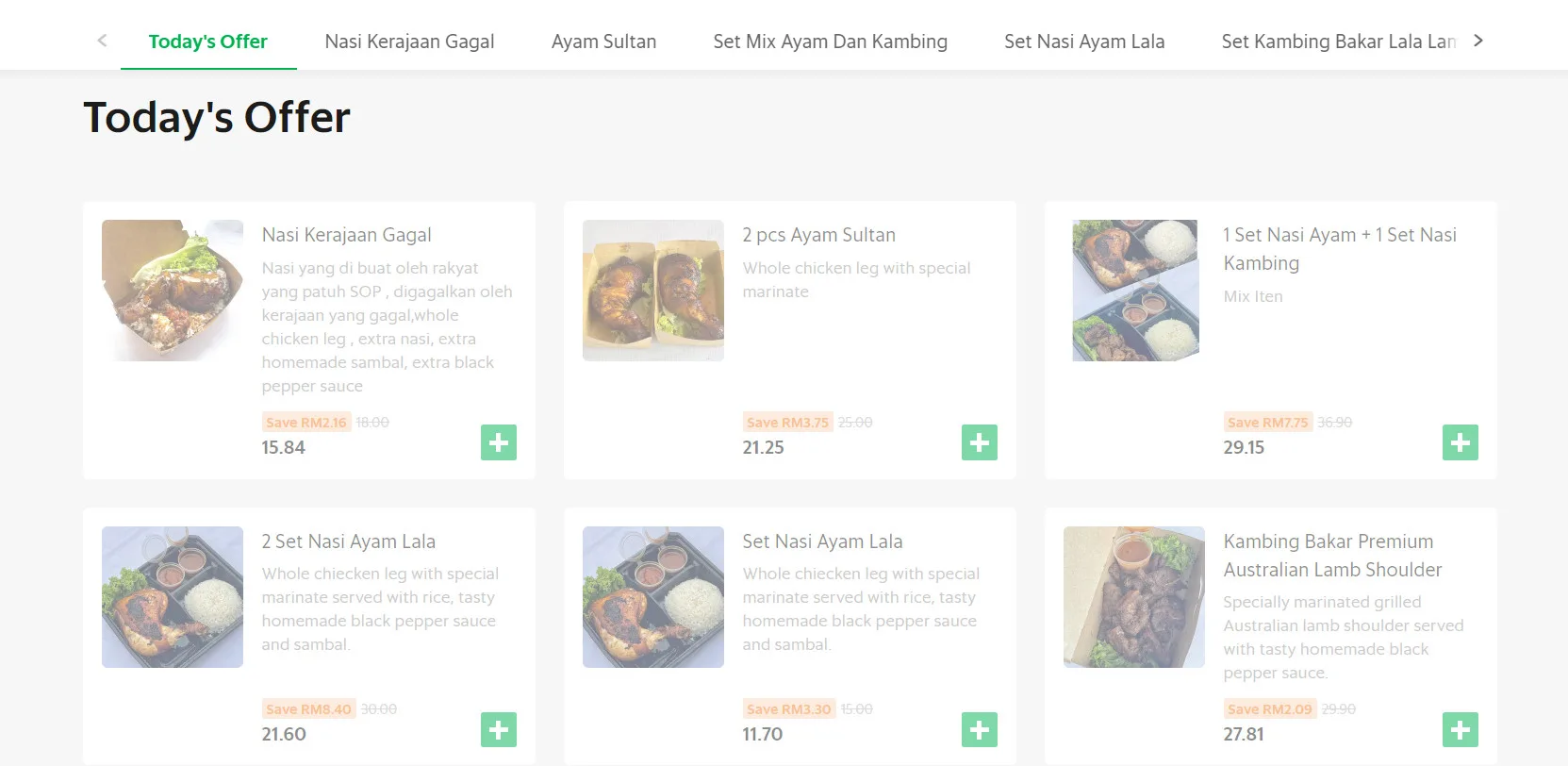 Apart from Nasi Kerajaan Gagal, priced at RM15.84, this restaurant also serves dishes such as Ayam Sultan and set meals of Nasi Ayam Lala and Nasi Kambing Bakar Premium Australian Lamb Shoulder. They definitely look delicious! The Facebook page of the restaurant has a large variety of promotions in regards to their meals too.