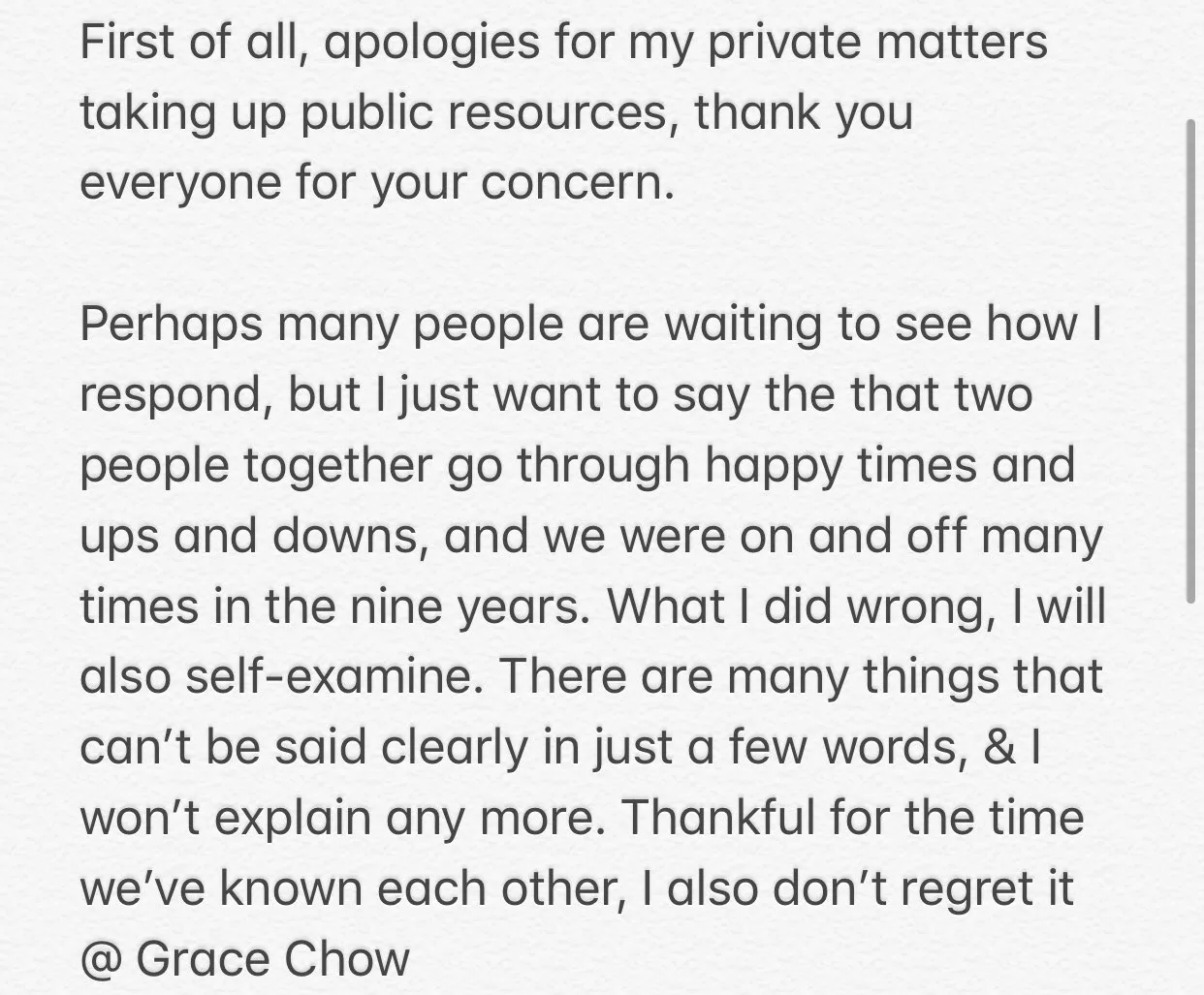 Show Lo also responded to Grace’s accusation with an apology. Read his statement below: