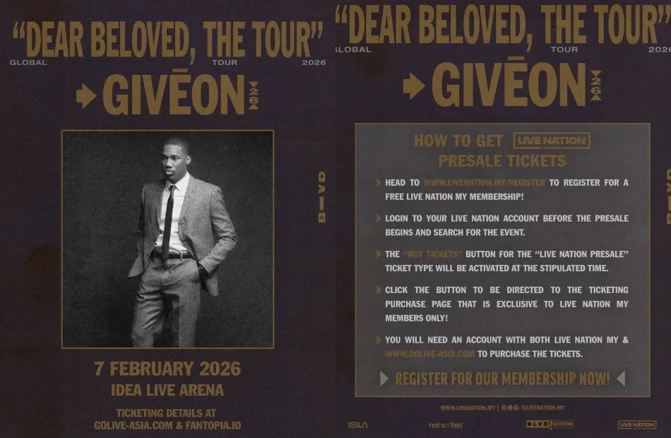 Mastercard cardholders in Malaysia will enjoy exclusive access to presale tickets. The Mastercard Presale runs from 12pm to 11:59pm on 24th November (Monday), via www.priceless.com/music. Live Nation members can secure tickets during their exclusive presale on 25th November (Tuesday), from 12pm to 11:59pm. Tickets for the general public go on sale from 12pm on 26th November (Wednesday), through www.goliveasia.com and www.fantopia.io.