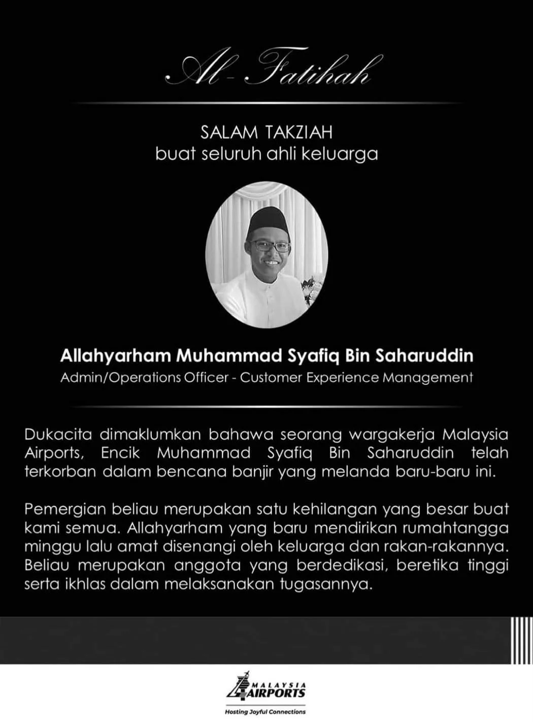 The Kuala Lumpur International Airport Facebook page posted their condolences to Muhammad Syafiq’s family members, as he was one of their employees.