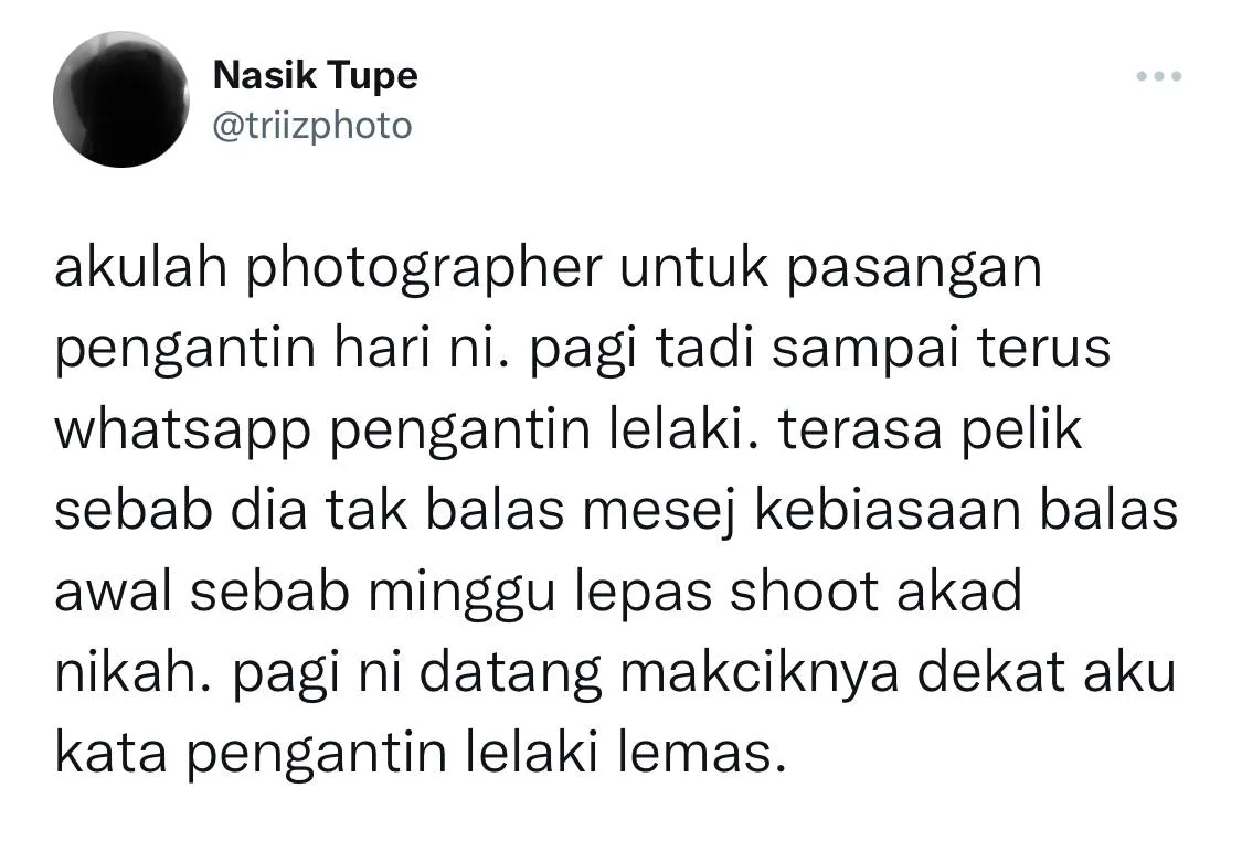 Muhammad Syafiq’s wedding photographer had also tweeted regarding the unfortunate and truly sad incident. In his tweet, he wondered if the groom was doing well because he was not replying to his text messages. That was when the deceased aunt came to him and broke the news.