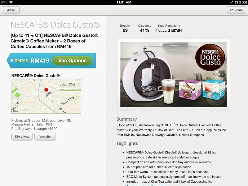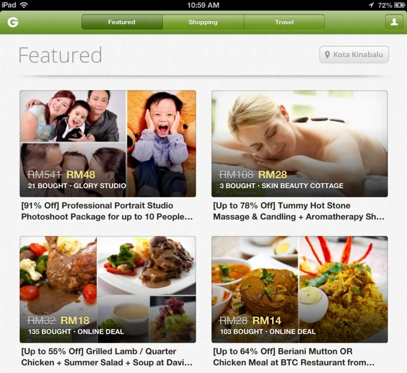 Today, Groupon Malaysia announced the debut of the popular free app Groupon HD for iPad to Malaysian shoppers. If you’ve always been a huge fan of Groupon, well, you know what this means, right? With Groupon HD, subscribers can now use their iPad devices to buy and redeem Groupon deals from their favorite local merchants, as well as Groupon Goods and Groupon Getaways deals.