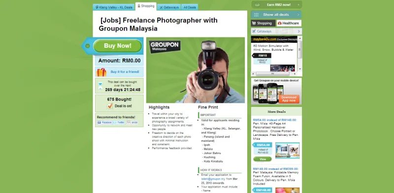 Groupon Malaysia has gone and done it again! For real, this time. No unicorns, no selling of super powers. The company is currently looking for a photographer to join them!