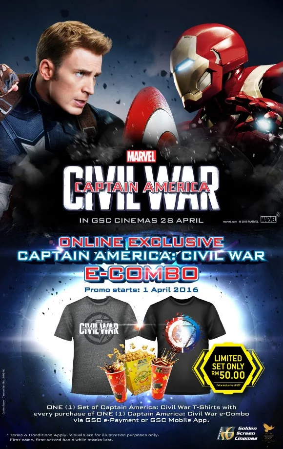 To celebrate the movie release, GSC is offering movie fans the opportunity to own exclusive “Captain America: Civil War” merchandise.