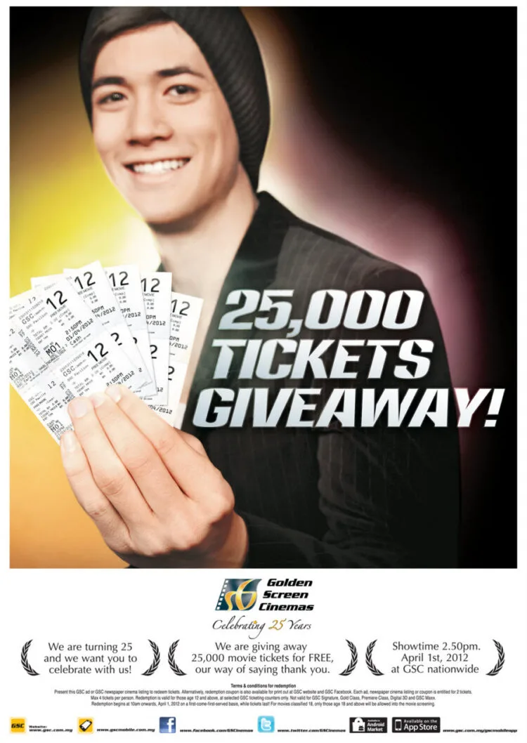 In celebration of Golden Screen Cinemas’ (GSC) 25th birthday, they are giving out a whopping take-your-breath-away number of 25,000 tickets nationwide!