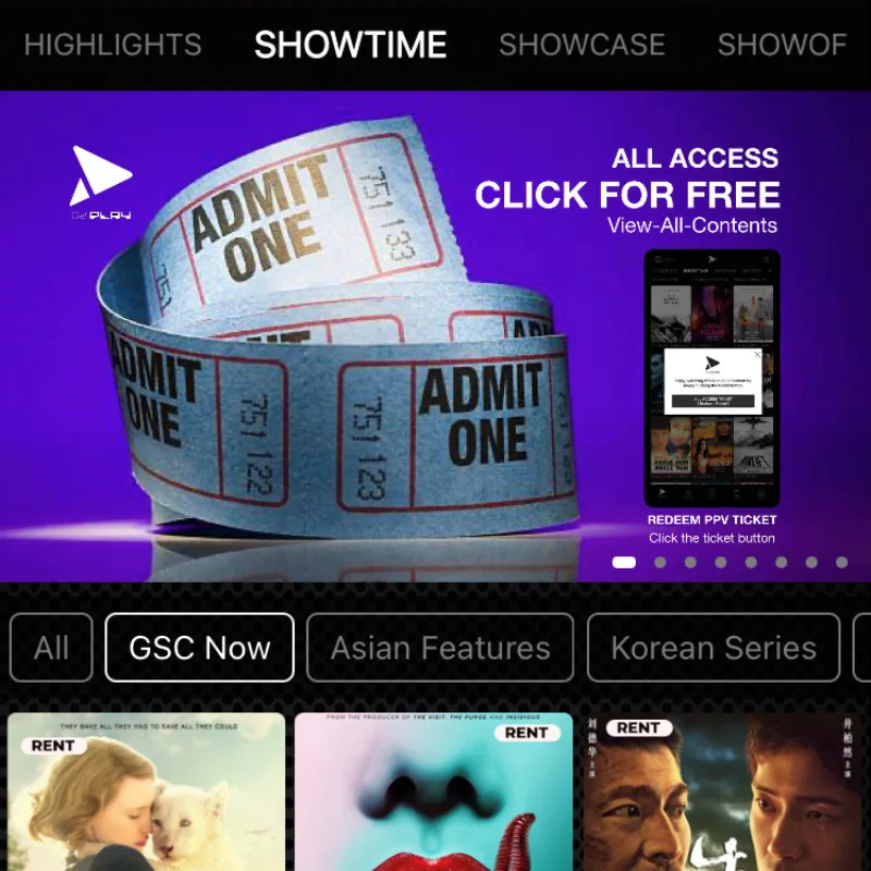 From the preview page, it appears that the GSC Now app is a collaboration between GSC and local streaming service GetPlay by Mbits Digital Sdn Bhd. Another interesting thing is that although the app is not yet available, the “GSC Now” tab can be found when accessing the Showtime menu in the GetPlay mobile app.