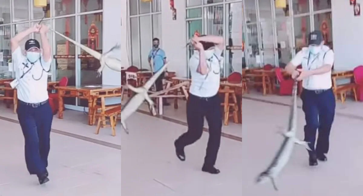 Over the weekend, a video went viral showing a shopping mall security guard in Kota Kinabalu, Sabah, getting rid of a wild monitor lizard that apparently made its way into the building.