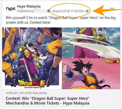 5. Click on the date of YOUR OWN Facebook contest post.