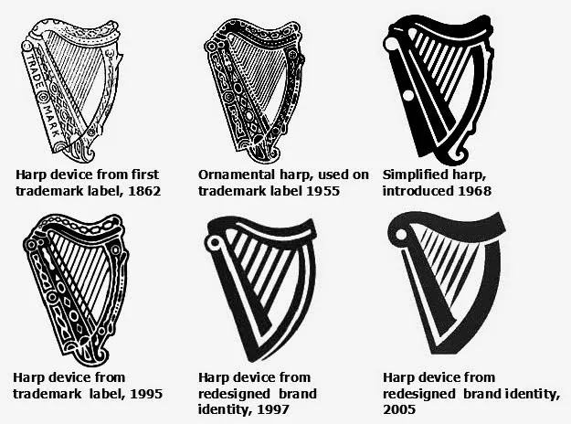 The harp, which serves as the Guinness emblem, is based on a famous 14th century Irish harp known as the “O’Neill” or “Brian Boru” harp which is now preserved in the Library of Trinity College Dublin. The harp device has been synonymous with Guinness since 1862 when it was used as a symbol on the first bottle label for Guinness. It was registered as a Guinness company trademark in 1876. The harp trademark inspired Guinness to name its first lager “Harp” in 1960.