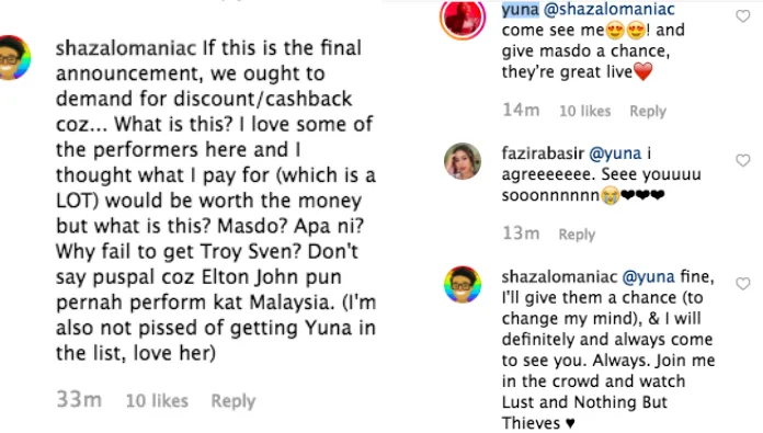 Yuna did chimed in and urge concert-goers to give musicians like Masdo a chance.