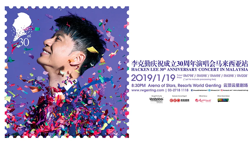 Brought to you by Unusual Entertainment, the details to “Hacken Lee 30th Anniversary Concert in Malaysia” are as follows:
