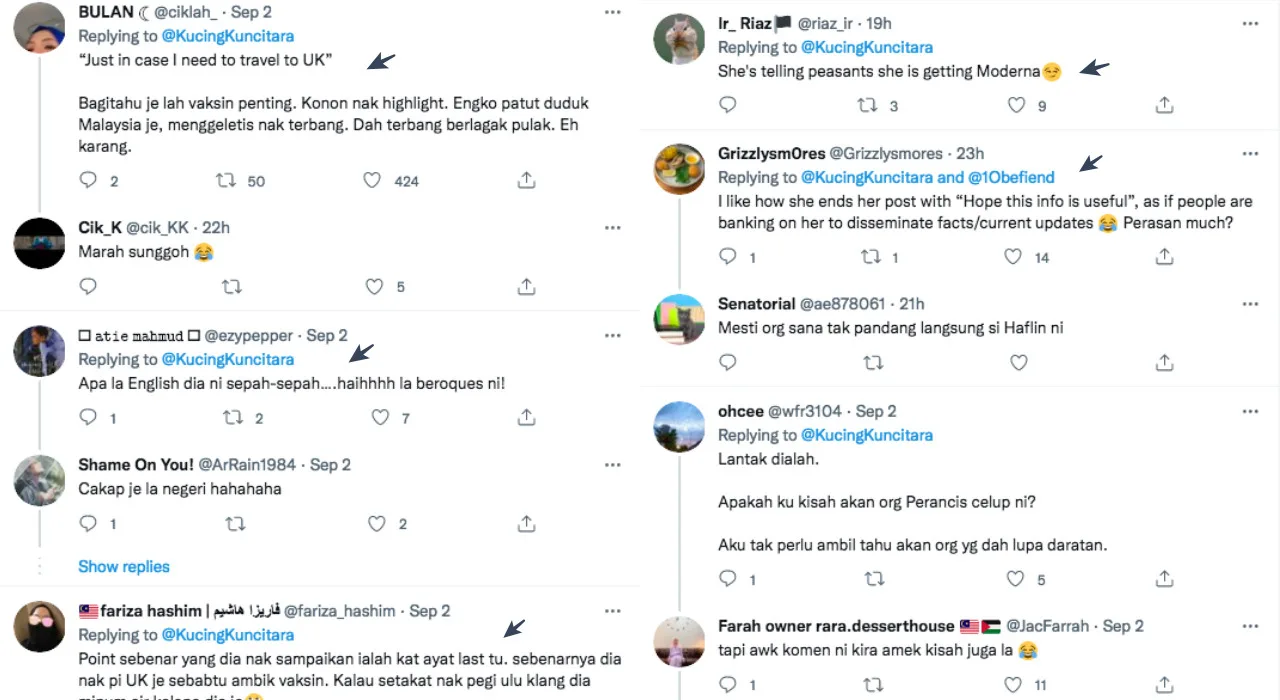 Haflin’s social media post has received tons of attention from local netizens. One Twitterverse member, @arifeddy12, decided to bring up the wife of Padang Rengas MP, Datuk Seri Mohamed Nazri Abdul Aziz’s past statement about refusing to take the Covid-19 vaccine injection. For those wondering, the Twitter member is the same person who came up with a huge revelation about Siti Sarah’s brother.
