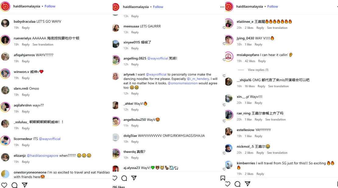 Fans have expressed their excitement, with many hoping that WayV might make a special appearance. However, while the anticipation is high, there has been no official indication that the group will be visiting Malaysia for an event. It remains unclear whether this collaboration will follow the same format as Haidilao’s current partnership with Jackson Wang.