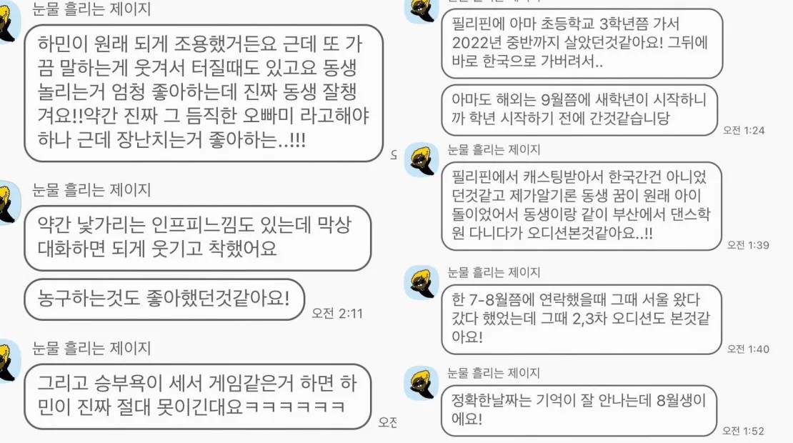 According to the SMBG Twitter account, Hamin moved to the Philippines when he was in middle school. He moved back to South Korea in mid-2022 to support his sister’s dreams of becoming an idol.