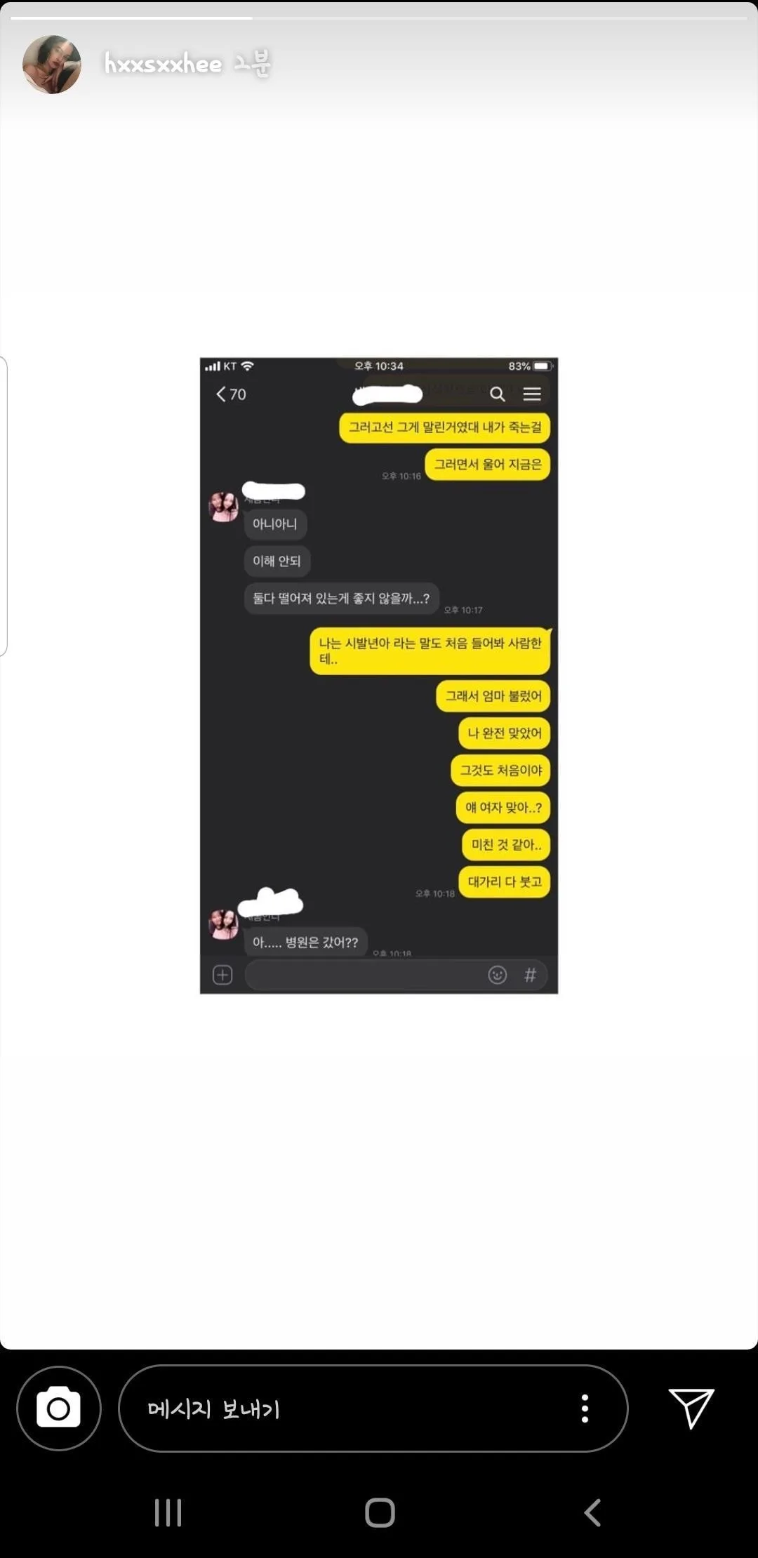 Another screenshot post showed her friend responded by saying that she “doesn’t understand” the whole situation, suggesting for the pair to just break up. In this case, Seo Hee continued by writing, “This was the first time someone name-called me bitch. I’ve called my mom. I was seriously slapped (by Da Eun). Is she even a girl? She’s crazy. My head was swollen.”