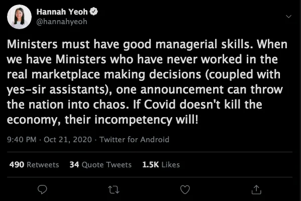 In another Twitter update, the politician wrote, “Ministers must have good managerial skills. When we have Ministers who have never worked in the real marketplace making decisions (coupled with yes-sir assistants), one announcement can throw the nation into chaos. If Covid doesn’t kill the economy, their incompetency will!”