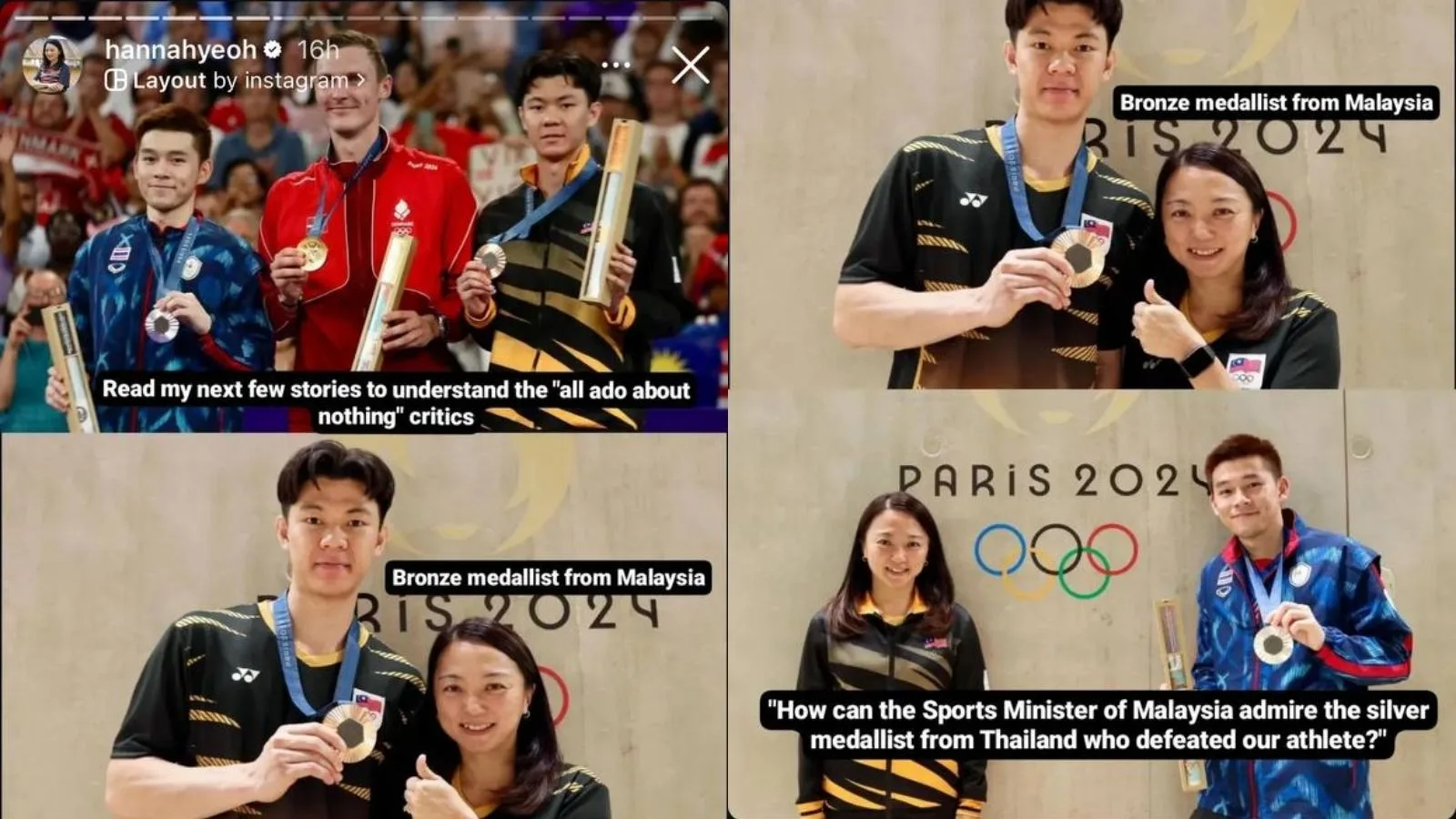 The Youth and Sports Minister has been in hot waters after posting with Thai badminton player Kunlavut Vitidsarn (กุลวุฒิ วิทิตศานต์), who beat our reigning athlete Lee Zii Jia (李梓嘉) during the semi-finals. She captioned the photo, “Congratulations @kunlavut.v for winning silver in Paris 2024. I enjoy his style of badminton so much. So calm and collected. He has a new fan in me!”