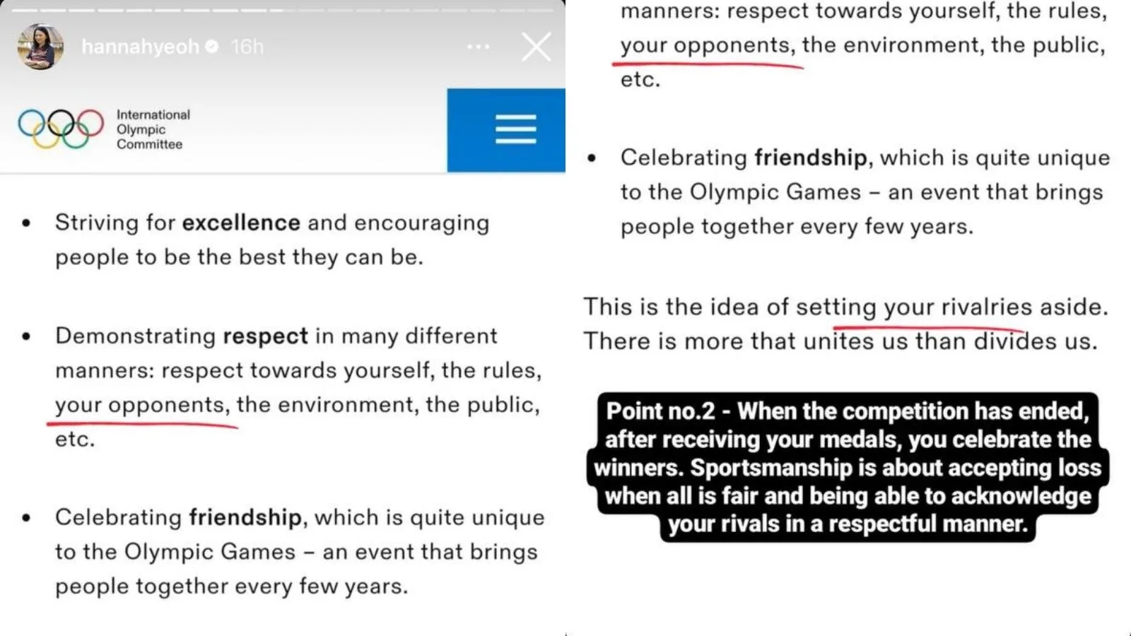 However, YB Hannah Yeoh has since clapped back at the hate she’s receiving via Instagram Stories, as shown in the screenshots below. The public figure handled the situation in the best way possible, by having each of her points backed up by the Olympic values.
