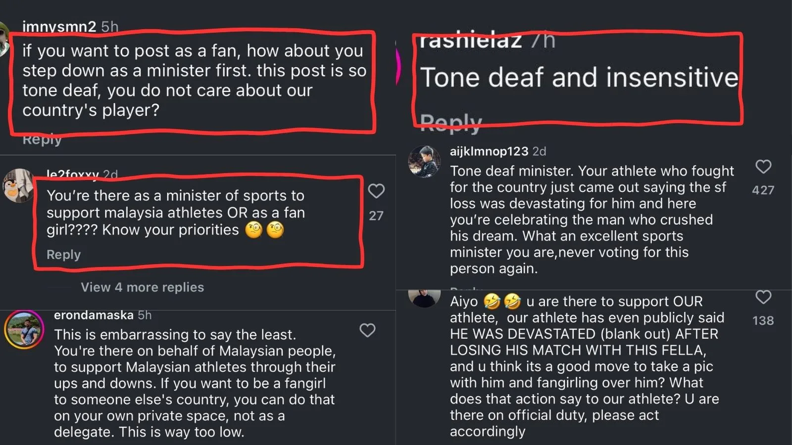 Because of this, Malaysians found fault with her actions, claiming she was “tone deaf” and not doing her job at the international multi-sport event. One user expressed that the politician was sent to the Olympics to provide support to our team and not “fangirl” over the other players.